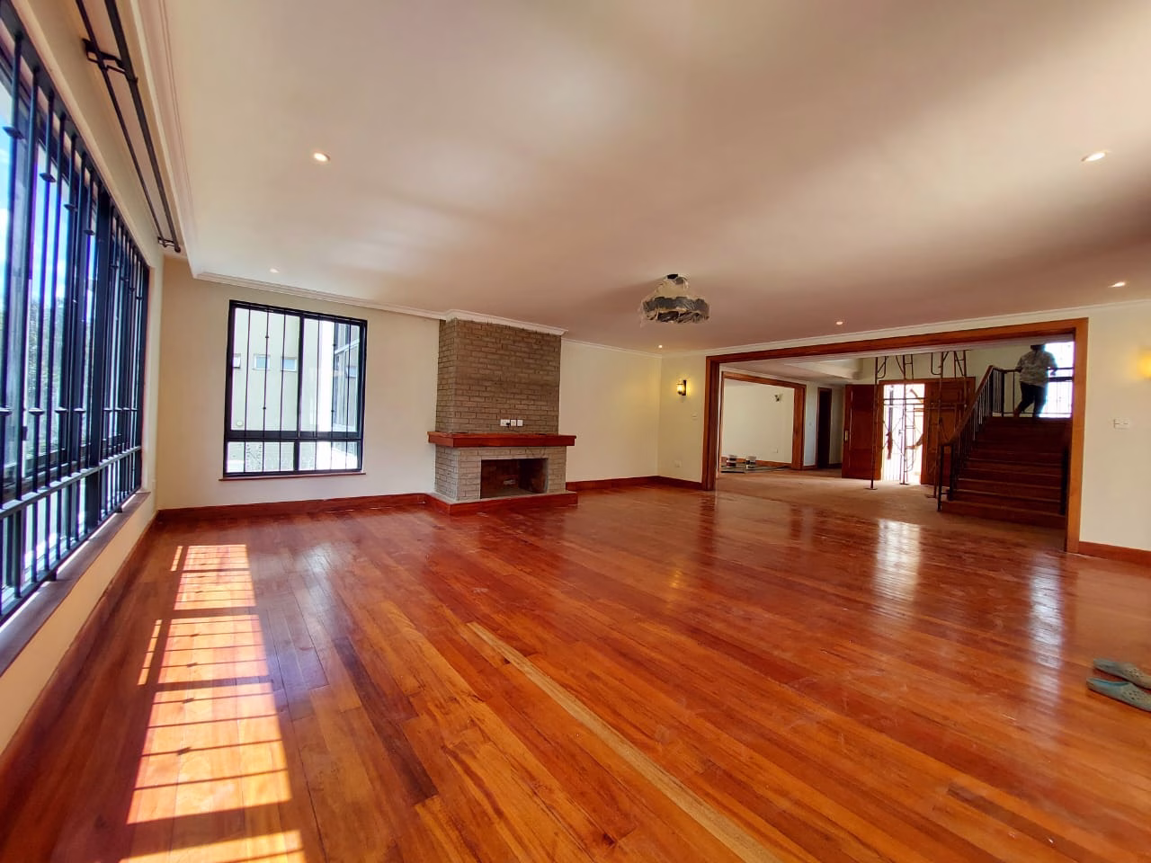 Ground Floor features 2 ensuite bedrooms, a spacious lounge with a cozy fireplace, a separate dining area, a guest washroom, a large dhobi area, and a closed fully-fitted kitchen with a pantry.